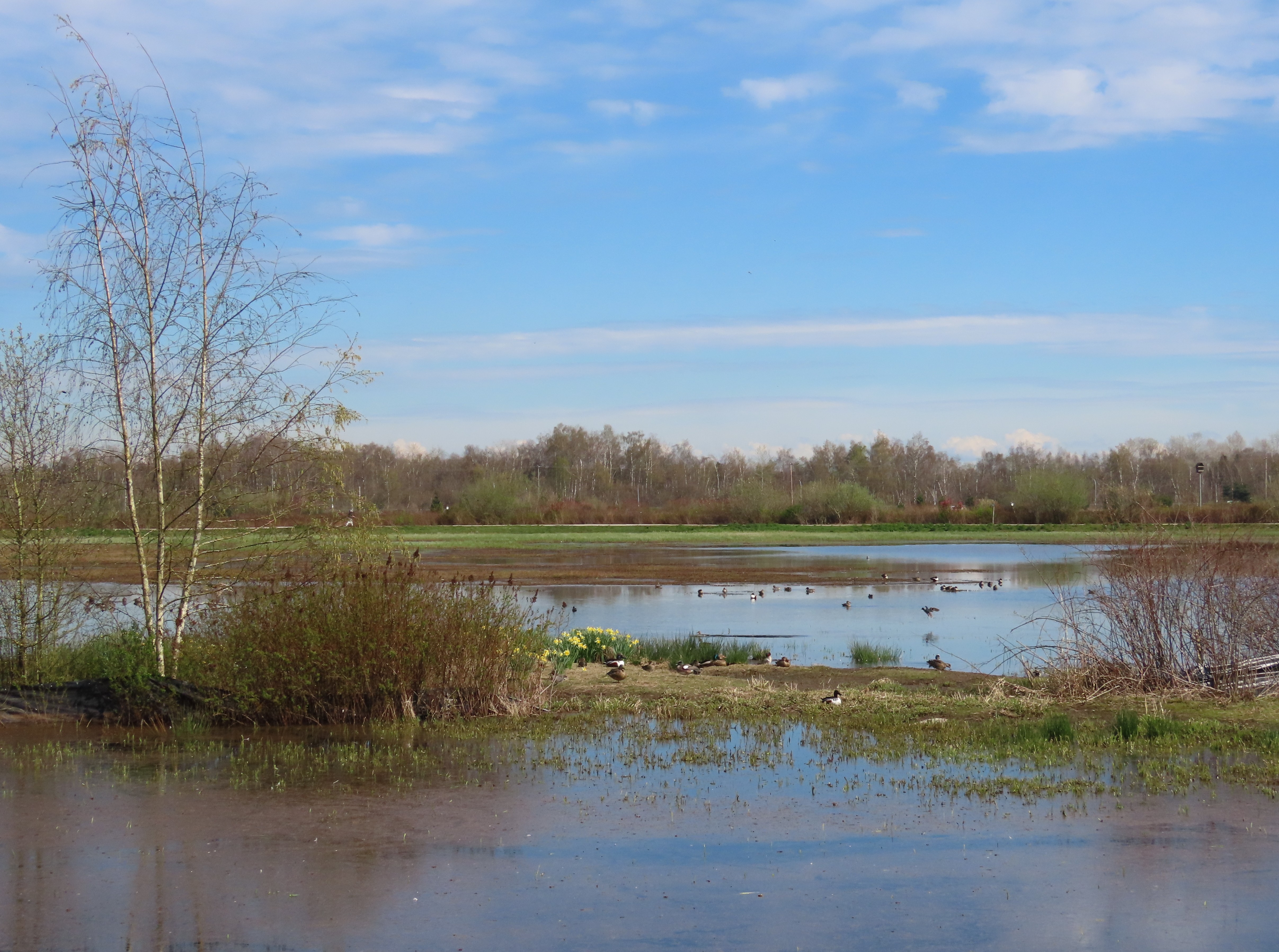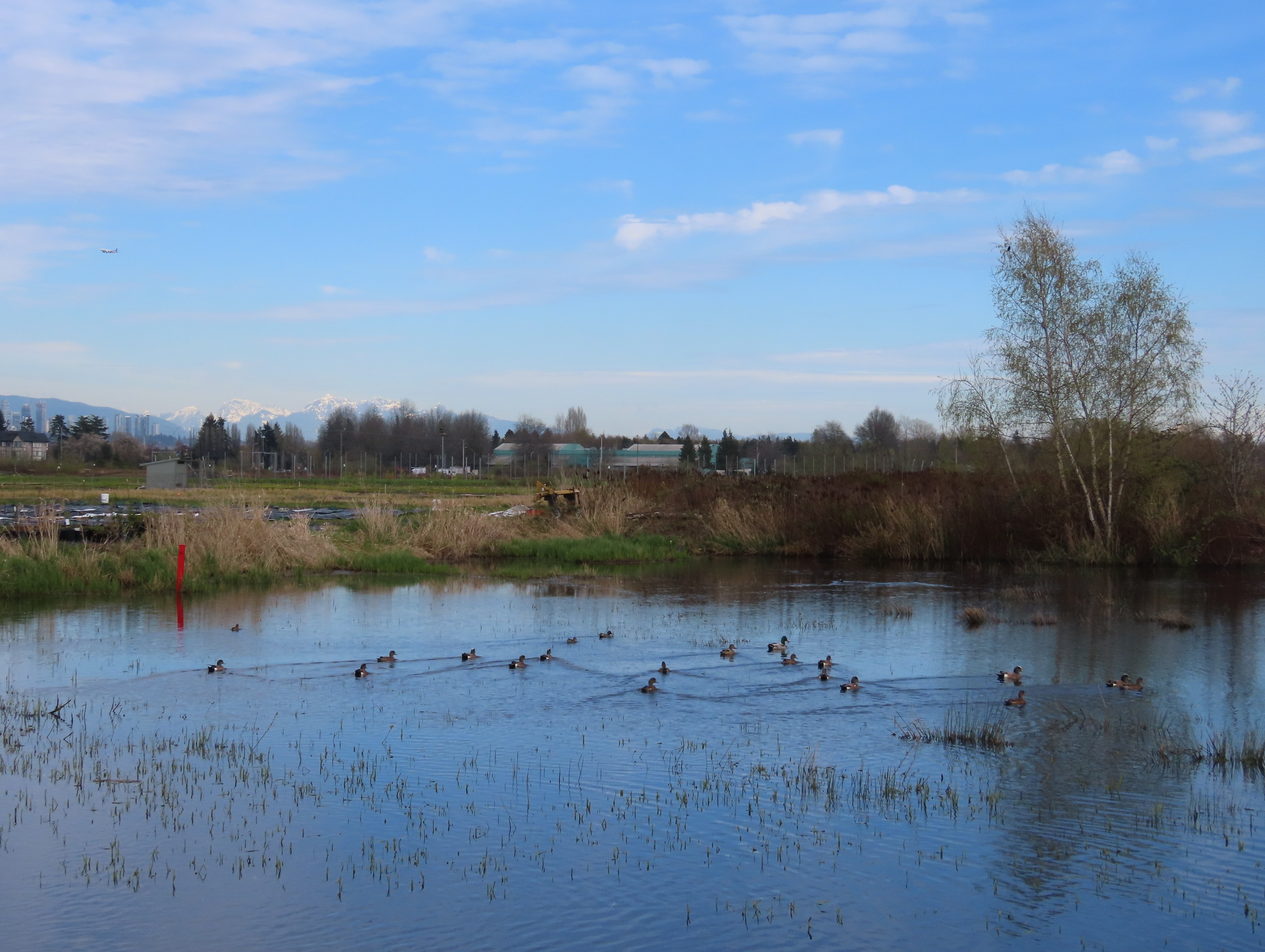 The 55 ha site narrowly escaped development, being acquired by the City of Richmond in 2010. It is protected as part of an Agricultural Land Reserve, which allows for small-scale community farming as well as conservation. The site contains natural a remnant bog and scrub, an artificial lake, lake and surrounding wetland, and community farmland. These habitats attract quite a rich avifauna. The lake has breeding Spotted Sandpipers and a number of waterfowl visit, including Hooded Merganser and Bufflehead. The marshes have breeding Common Yellowthroat and Savannah Sparrow. Wilson's Snipe is present in winter and spring, Killdeer throughout the year. Northern Harrier is seen thoughout the year, Northern Shrike occasionally in winter. Around 115 species have been recorded on eBird.