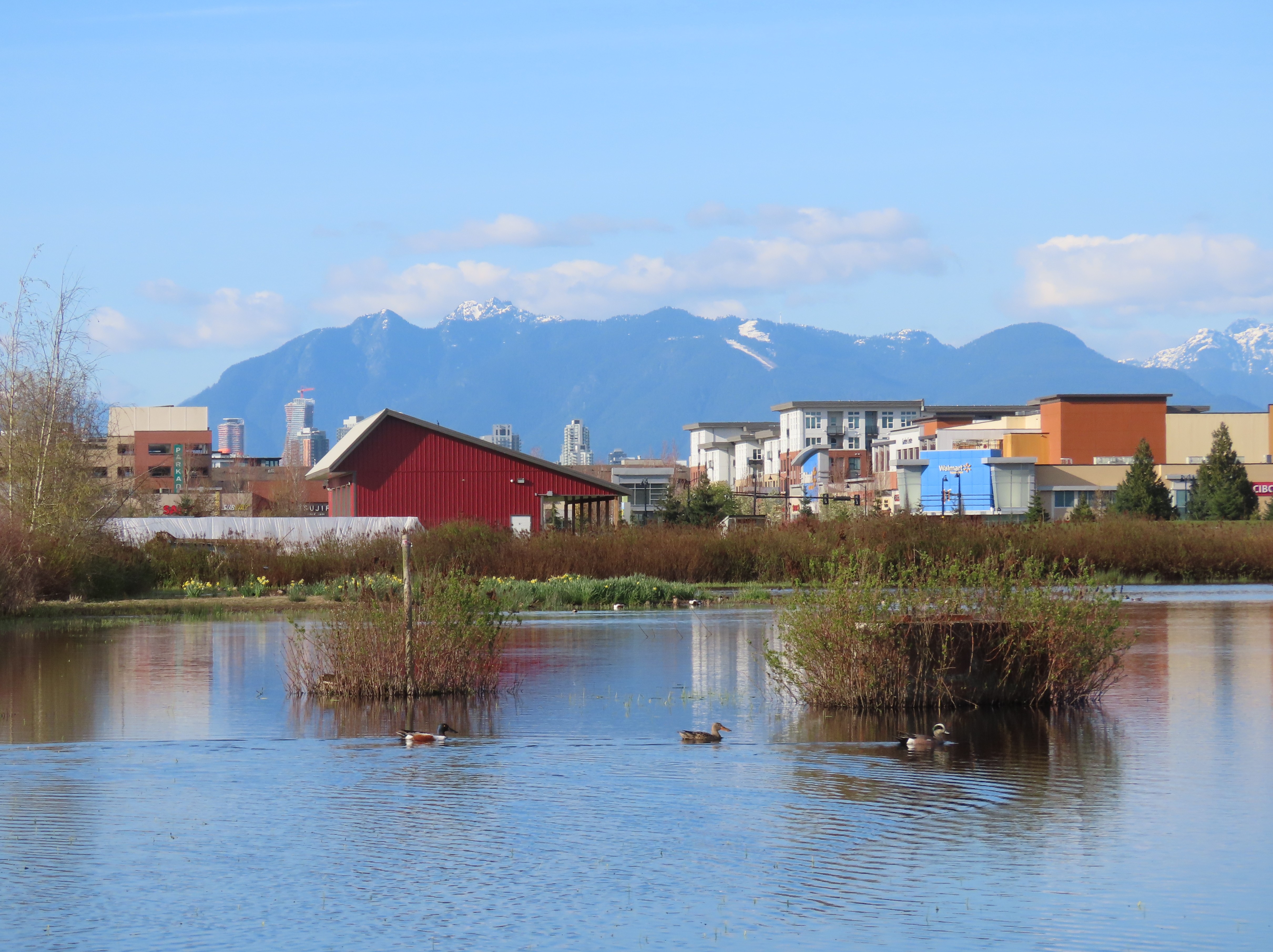 This is a multi-purpose area which effectively forms a nature reserve.reserve, easily visited from Richmond or elsewhere in the Vancouver area. Although adjacent to the built-up suburb of Richmond, it is contiguous with a large forested area. To the east is a closed military area and the Richmond Nature Park.